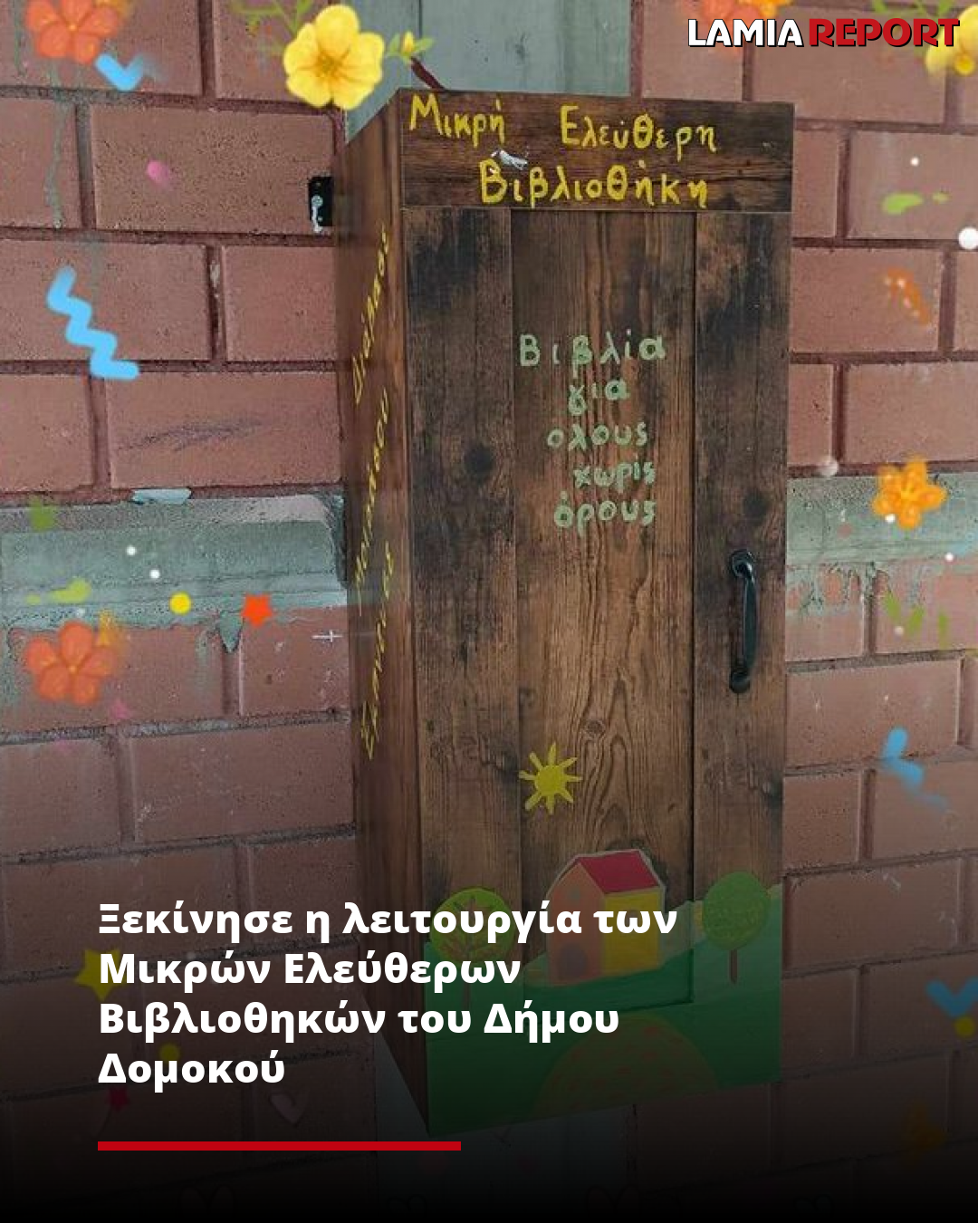 Ο Δήμος Δομοκού ανακοίνωσε με χαρά την έναρξη λειτουργίας των Μικρών Ελεύθερων Βιβλιοθηκών, «μια καινοτόμο δράση που στοχεύει στην προώθηση της φιλαναγνωσίας και στην ενίσχυση της κουλτούρας του βιβλίου σε όλες τις ηλικιακές ομάδες».