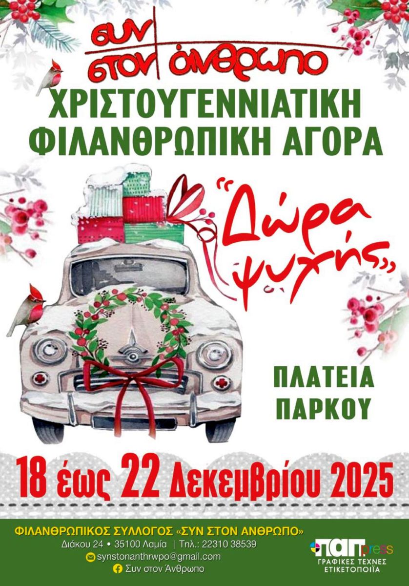 Λαμία: «Δώρα Ψυχής» από το "Συν στον Ανθρωπο" και φέτος τα Χριστούγεννα!