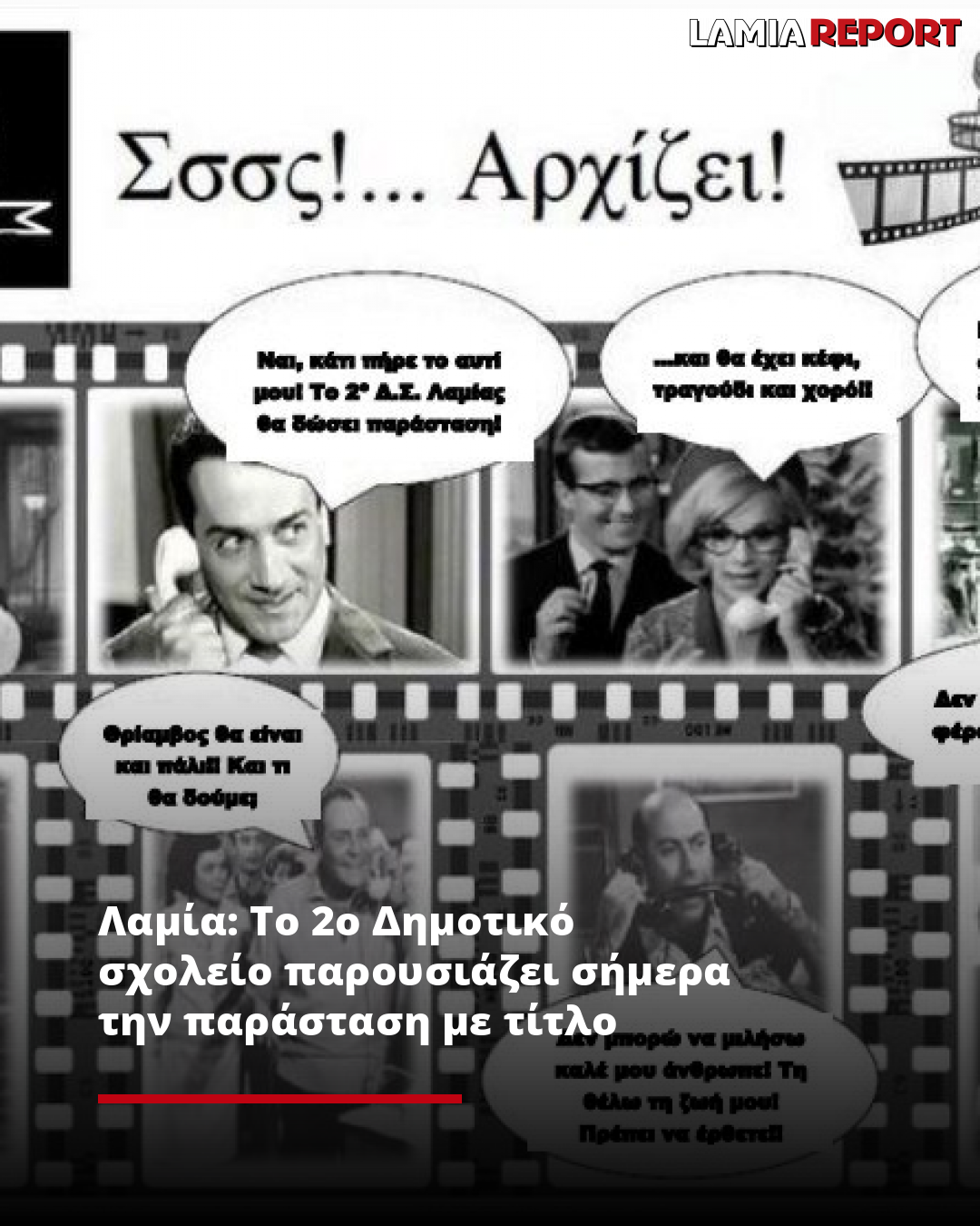 Το 2ο Δημοτικό σχολείο Λαμίας παρουσιάζει την παράσταση με τίτλο "Σαν παλιά ελληνική ταινία", με έντονο το άρωμα της "ΦΙΝΟΣ ΦΙΛΜ", που ξεχωρίζει το κέφι και η νοσταλγία!