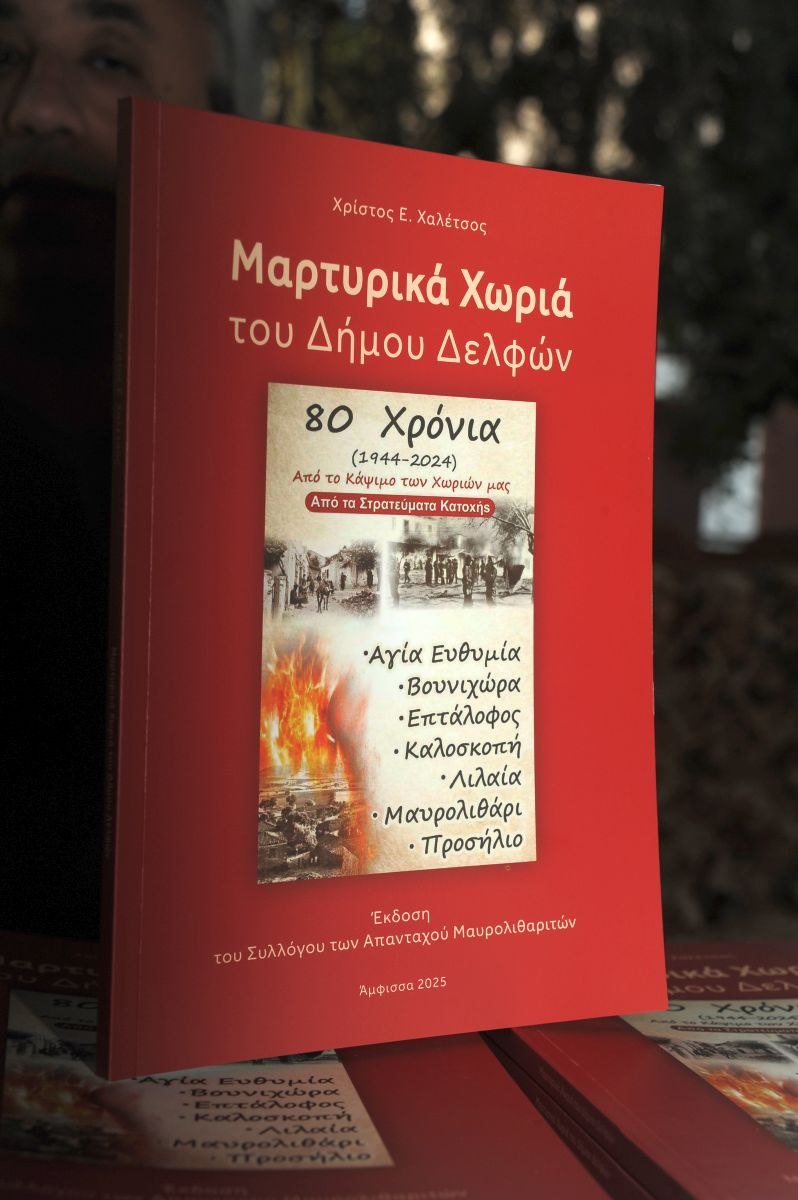 Με ιδιαίτερη επιτυχία πραγματοποιήθηκε η παρουσίαση του βιβλίου «ΜΑΡΤΥΡΙΚΑ ΧΩΡΙΑ ΤΟΥ ΔΗΜΟΥ ΔΕΛΦΩΝ» του Χρίστου Χαλέτσου, έκδοση του Συλλόγου των Απανταχού Μαυρολιθαριτών, στις 25-6-2025, στη Λαμία.