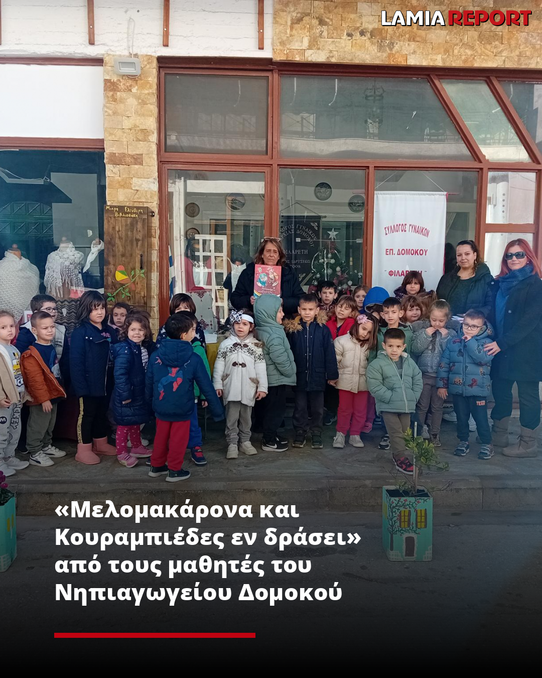 «Ο Δήμος Δομοκού ευχαριστεί το Νηπιαγωγείο Δομοκού για τη συμμετοχή του και εύχεται στους εκπαιδευτικούς και τους μαθητές καλές γιορτές, με υγεία, αγάπη και δημιουργικότητα!»
