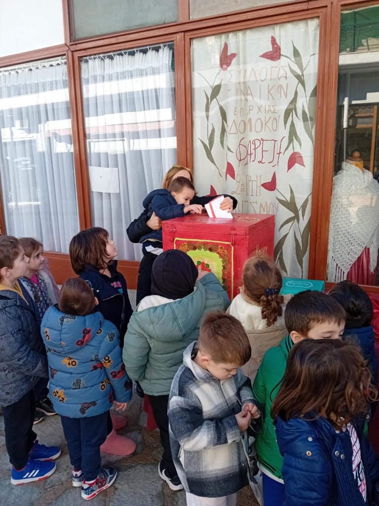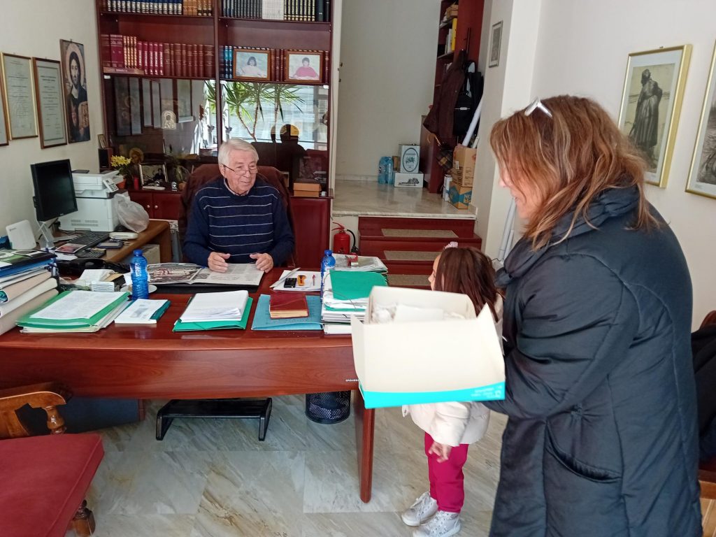 Οι μικροί μαθητές, συνοδευόμενοι από τη Διευθύντρια, Κωνσταντίνα Τσανή, και τις Νηπιαγωγούς, Ανδριανή Παπαγιάννη και Γεωργία Φίκα, συμμετείχαν σε μια ζεστή και δημιουργική δραστηριότητα με θέμα το παραμύθι «Μελομακάρονα και Κουραμπιέδες εν δράσει».