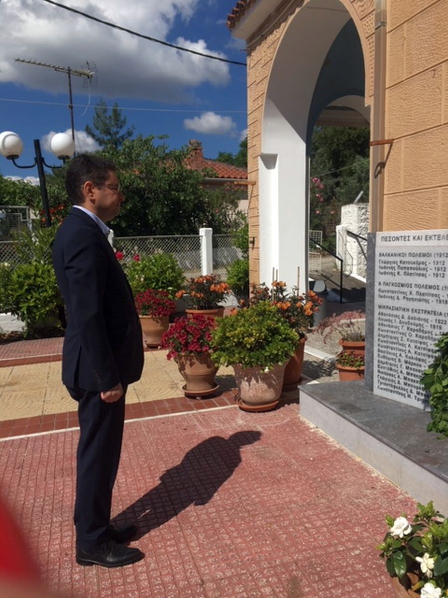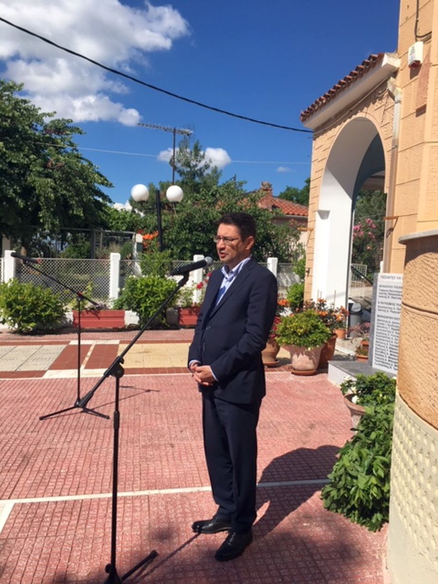 Στο χαιρετισμό του ο Δήμαρχος επισήμανε την ανάγκη να τιμούμε τους προγόνους μας που θυσιάστηκαν για την πατρίδα και να διατηρούμε την εθνική ομόνοια και ομοψυχία, μακριά από τραγικές περιόδους της ελληνικής ιστορίας, όπως ο ελληνικός εμφύλιος στο οποίο χάθηκε άδικα ελληνικό αίμα από τις αντιμαχόμενες πλευρές.