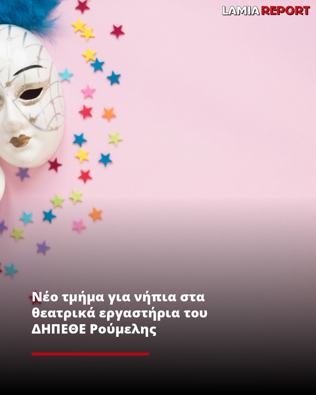 Το ΔΗΠΕΘΕ Ρούμελης διοργανώνει για πρώτη φορά θεατρικά εργαστήρια για νήπια 3-5 ετών, με δασκάλα την Κατερίνα Γλωσσοπούλου, στον ειδικά διαμορφωμένο χώρο του, στο νεοκλασικό που βρίσκεται στη διασταύρωση των οδών Αριστοτέλους και Ησαΐα, στην Πλατεία Λαού.