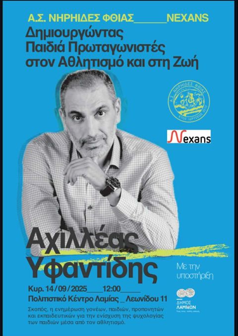 Ο Αθλητικός Σύλλογος Νηρηίδες Φθίας Nexans, με τη στήριξη της Nexans και την υποστήριξη του Δήμου Λαμιέων, διοργανώνει μια σημαντική εκδήλωση με θέμα: «Δημιουργώντας Παιδιά Πρωταγωνιστές στον Αθλητισμό και στη Ζωή».