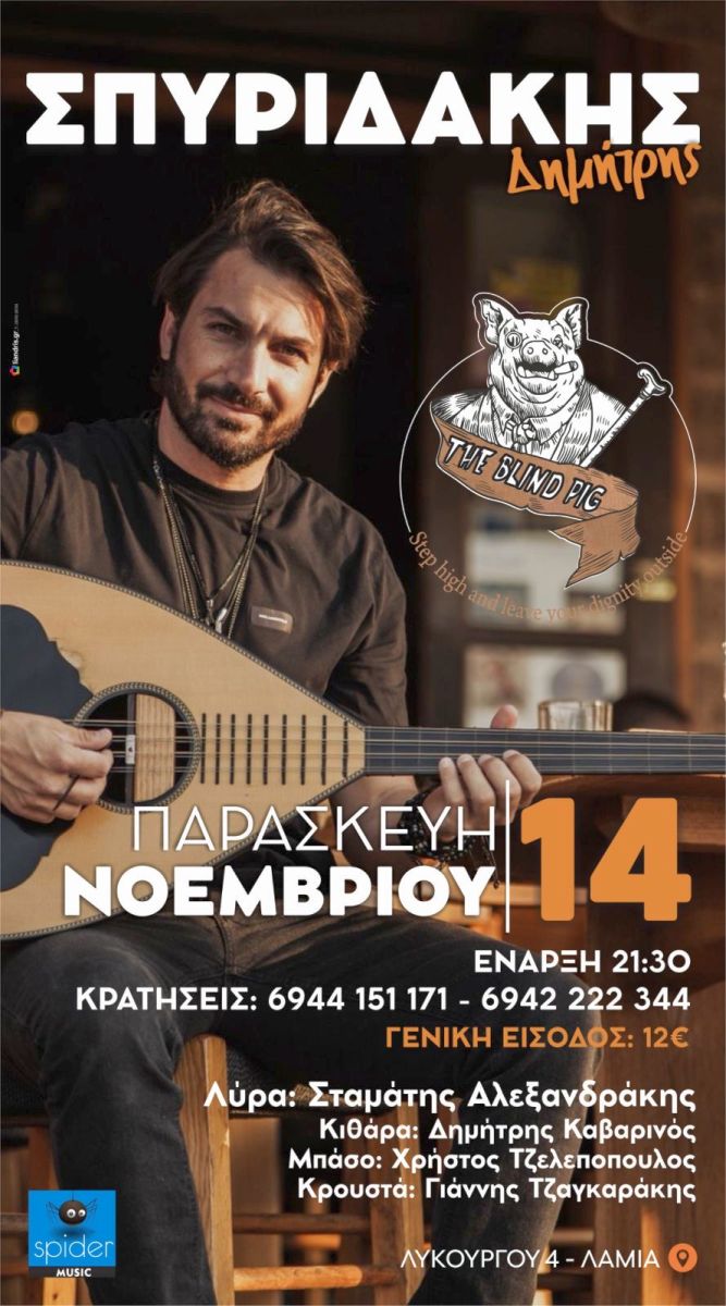 Ο Δημήτρης Σπυριδάκης, ο γνωστός καλλιτέχνης, θα βρεθεί στο The Blind Pig και υπόσχεται να μας χαρίσει μια μοναδική κρητική βραδιά.