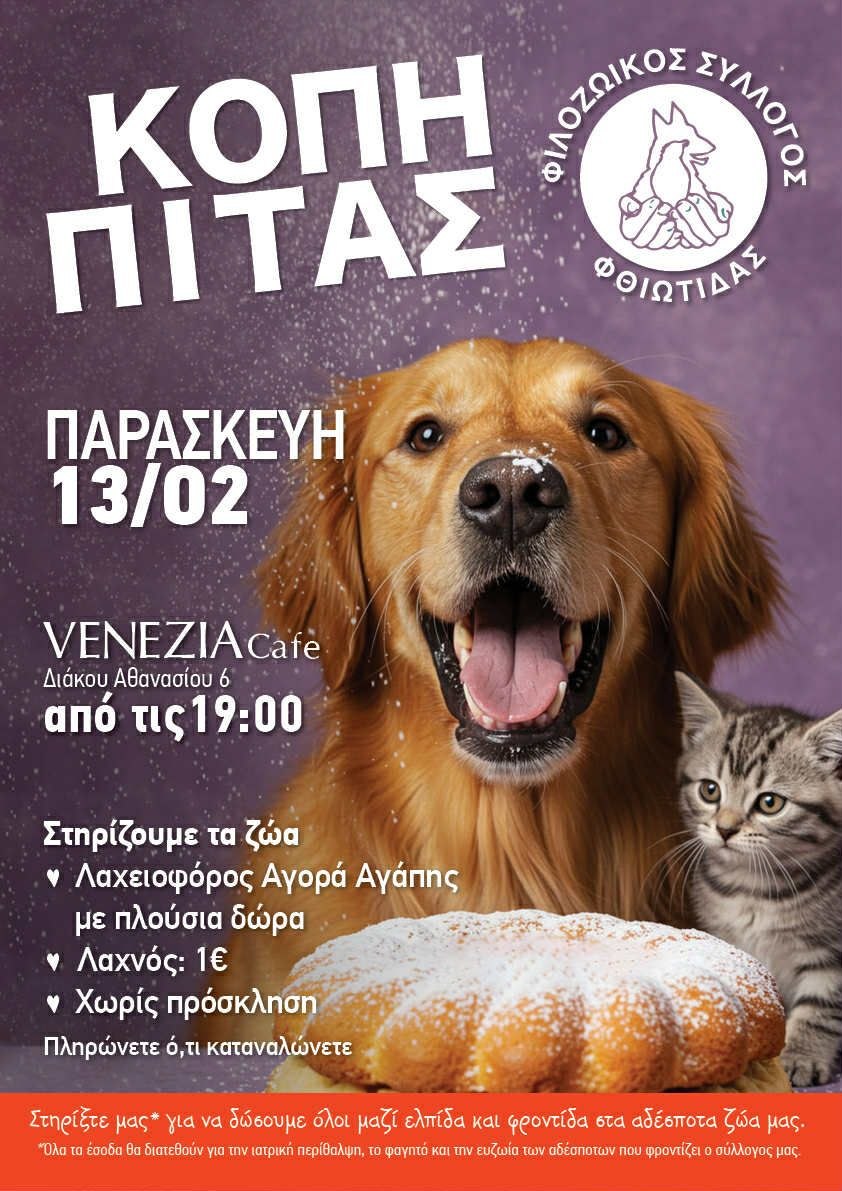 Η πίτα του Φιλοζωικού Συλλόγου Φθιώτιδας κάνει τις ευχές για τα αδεσποτάκια αληθινές.