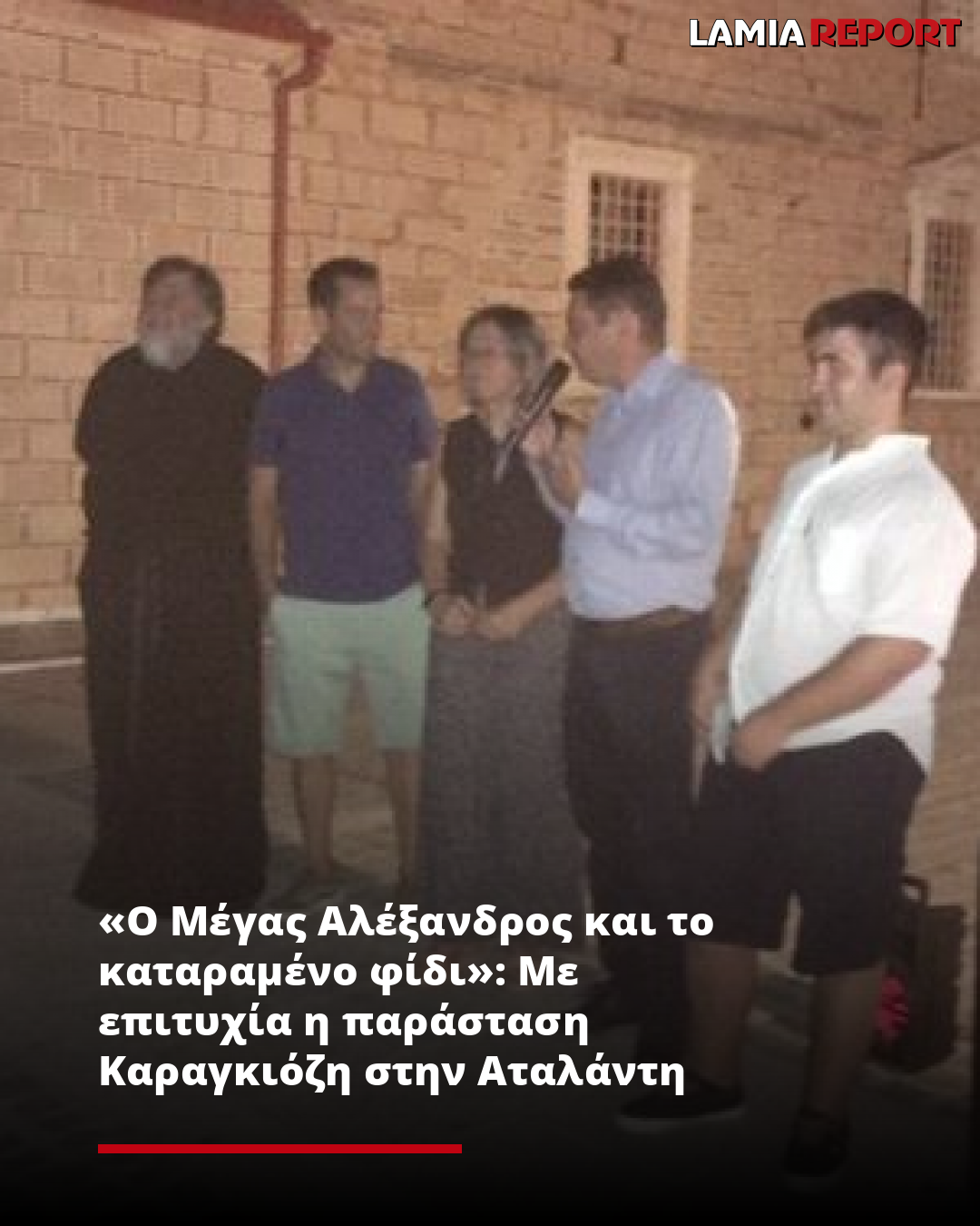 Με επιτυχία πραγματοποιήθηκε η παράσταση του Θεάτρου Σκιών Σουλτανόπουλου «Ο Μέγας Αλέξανδρος και το καταραμένο φίδι», σε συνδιοργάνωση του Δήμου Λοκρών, της Αιαντείου Δημόσιας Βιβλιοθήκης Αταλάντης και του Ιερού Μητροπολιτικού Ναού Αγίων Θεοδώρων Αταλάντης την Κυριακή 18 Αυγούστου 2025 στην Πλατεία Δημαρχείου Αταλάντης στις 21:00.