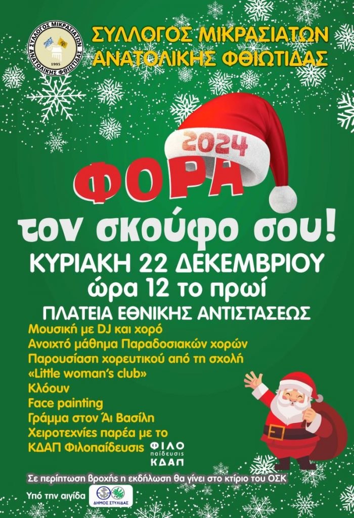 Ο Σύλλογος Μικρασιατών Ανατολικής Φθιώτιδας, υπό την αιγίδα του Δήμου Στυλίδας, διοργανώνει τη Χριστουγεννιάτικη εκδήλωση "Φόρα τον σκούδο σου".