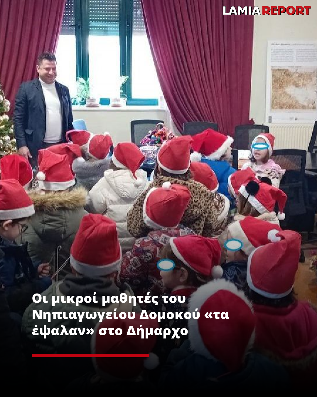 Μια ζεστή χριστουγεννιάτικη ατμόσφαιρα δημιούργησαν οι μικροί μαθητές του Νηπιαγωγείου Δομοκού, που επισκέφθηκαν το Δημαρχείο για να πουν τα κάλαντα στον Δήμαρχο Δομοκού, Μπάμπη Λιόλιο.