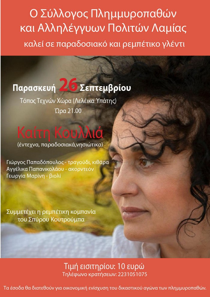 Με την εκδήλωση που προγραμματίστηκε για τις 26 Σεπτέμβρη στη "Χώρα" ελπίζουμε οι πολίτες της Λαμίας να στηρίξουν αυτόν τον αγώνα και ταυτόχρονα να περάσουν ένα αξέχαστο βράδυ».