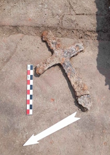 Στα σημεία γενέσεως του τόξου της αψίδας υπάρχουν δύο ογκώδεις πεσσοί, από τις εσωτερικές πλευρές των οποίων ξεκινούν δύο αναβαθμοί. Μεγάλο ενδιαφέρον έχουν δύο σιδερένιοι σταυροί, καθώς και μία χάλκινη στεφάνη πολυκάνδηλου που βρέθηκαν στην επίχωση.