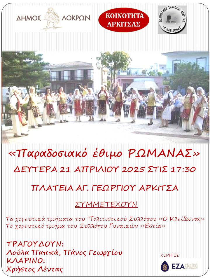 Την Δευτέρα λοιπόν, 21 Απριλίου 2025, δίνουμε ραντεβού στην πλατεία του Αγ. Γεωργίου στην Αρκίτσα, για να διασκεδάσουμε και να αναβιώσουμε όλοι μαζί το παλιό αγαπημένο έθιμο.