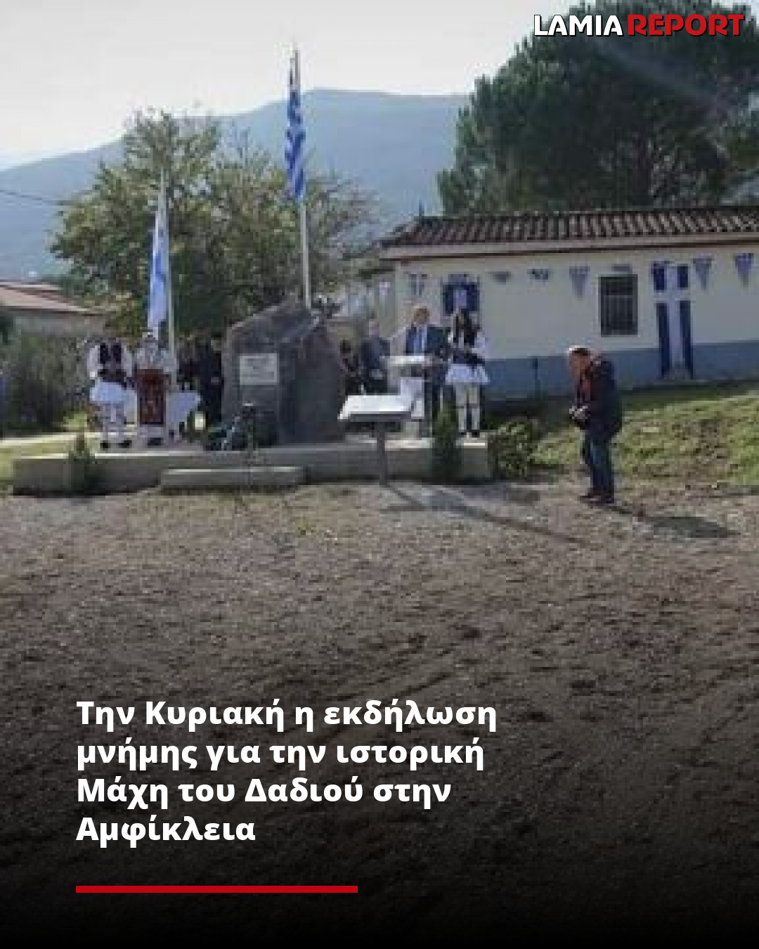 «Ο Δήμος Αμφίκλειας - Ελάτειας και η Κοινότητα Αμφίκλειας σας προσκαλούν στην εκδήλωση μνήμης για την ιστορική Μάχη του Δαδιού την 1η Νοεμβρίου 1822, την Κυριακή 3 Νοεμβρίου 2024, και ώρα 11:00’ το πρωί στο Μνημείο Πεσόντων (δυτικά του Γυμνασίου – Λυκείου Αμφίκλειας).