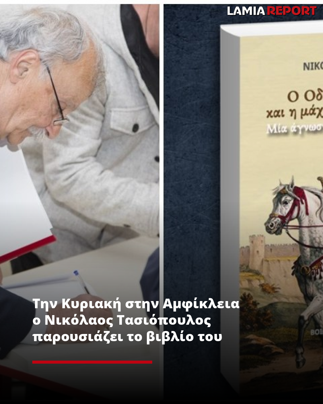 «Στην φιλόξενη Αμφίκλεια, την Κυριακή (8/12), στις 6:30 το απόγευμα, στην υπέροχη ανακαινισμένη Δαδιώτικη Στέγη Πολιτισμού (Αθ. Ευταξία και Κρυστάλλη, είσοδος από Κρυστάλλη), ο συντοπίτης μας Ιστορικός Ερευνητής και Συγγραφέας Νίκος Τασιόπουλος θα παρουσιάσει το έργο του "Ο ΟΔΥΣΣΕΑΣ ΑΝΤΡΟΥΤΣΟΣ ΚΑΙ Η ΜΑΧΗ ΣΤΟΥ ΚΑΤΙΚΟΥ ΤΟ ΧΑΝΙ"..