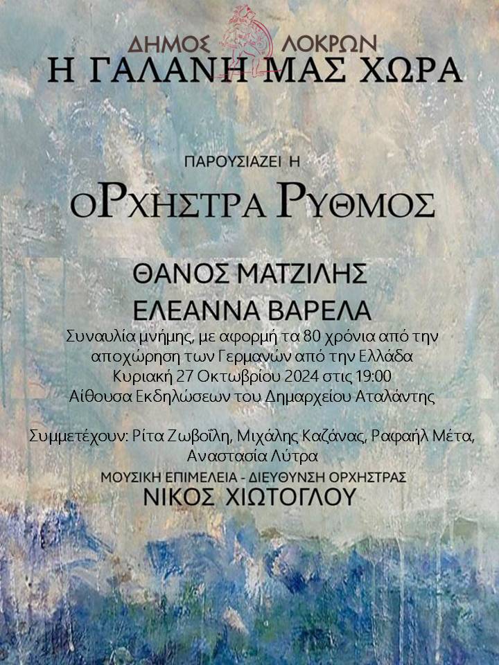 Ο Δήμος Λοκρών για να τιμήσει τα 80 χρόνια από την αποχώρηση των Γερμανών από την Ελλάδα διοργανώνει συναυλία μνήμης.