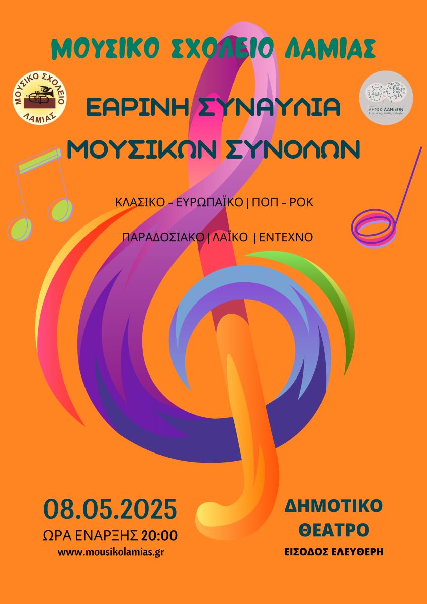 Το Μουσικό Σχολείο Λαμίας με την υποστήριξη του Δήμου Λαμιέων παρουσιάζει την Πέμπτη, 8 Μαΐου 2025 και ώρα 20.00 στο Δημοτικό Θέατρο