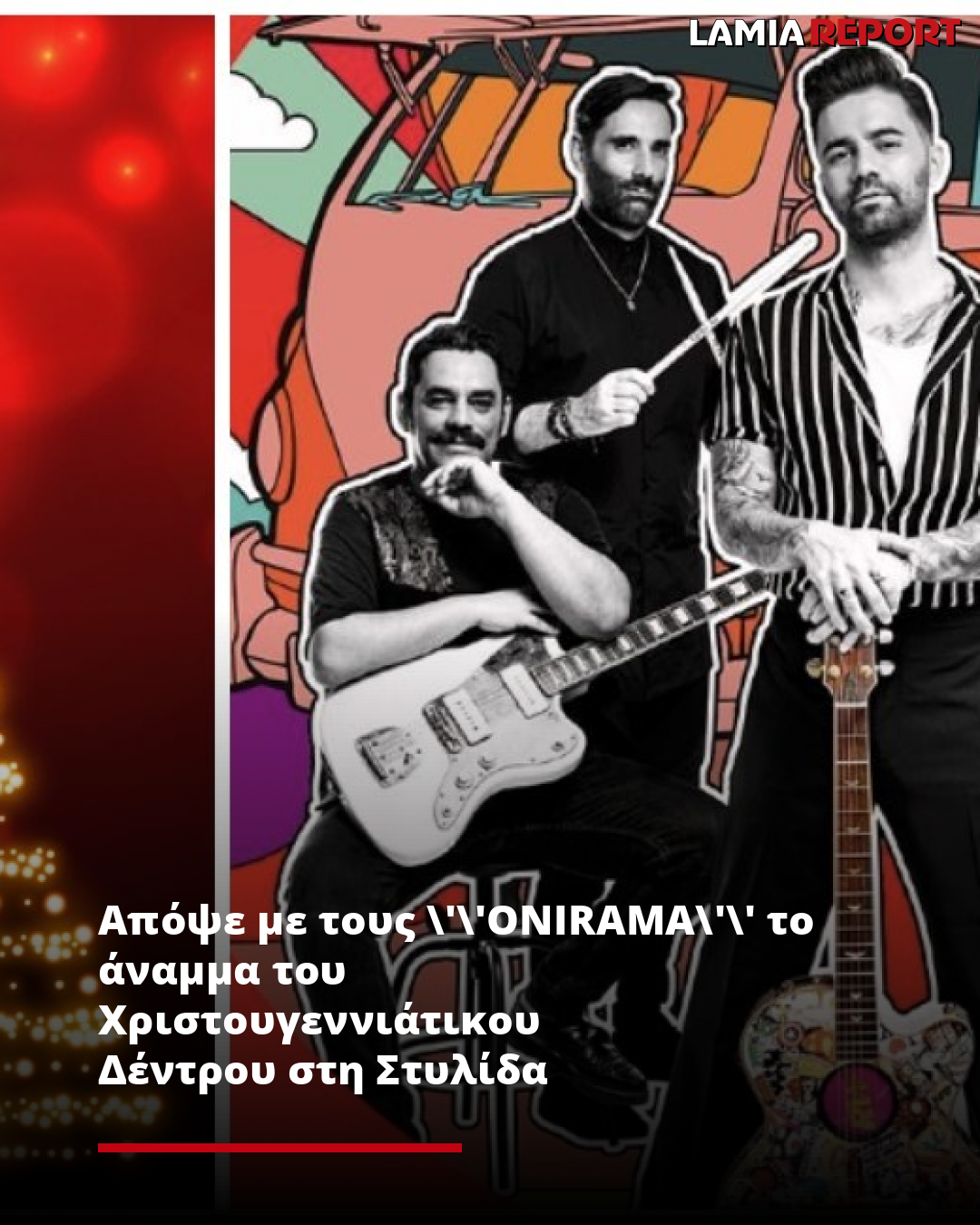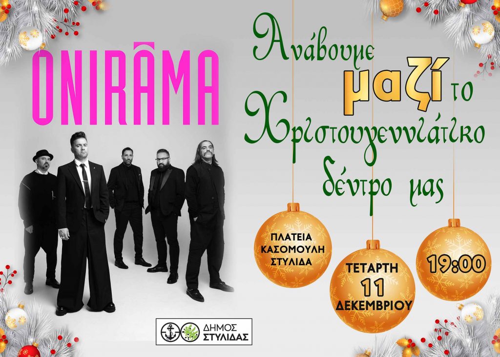 «Την Τετάρτη 11 Δεκεμβρίου στην Στυλίδα (Πλατεία Κασομούλη) , στις 19:00 ανάβουμε το Χριστουγεννιάτικο Δέντρο μας μαζί με τους ONIRAMA !