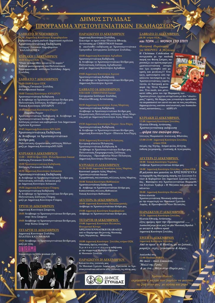 Διαβάστε αναλυτικά ολόκληρο το εορταστικό πρόγραμμα του Δήμου Στυλίδας: