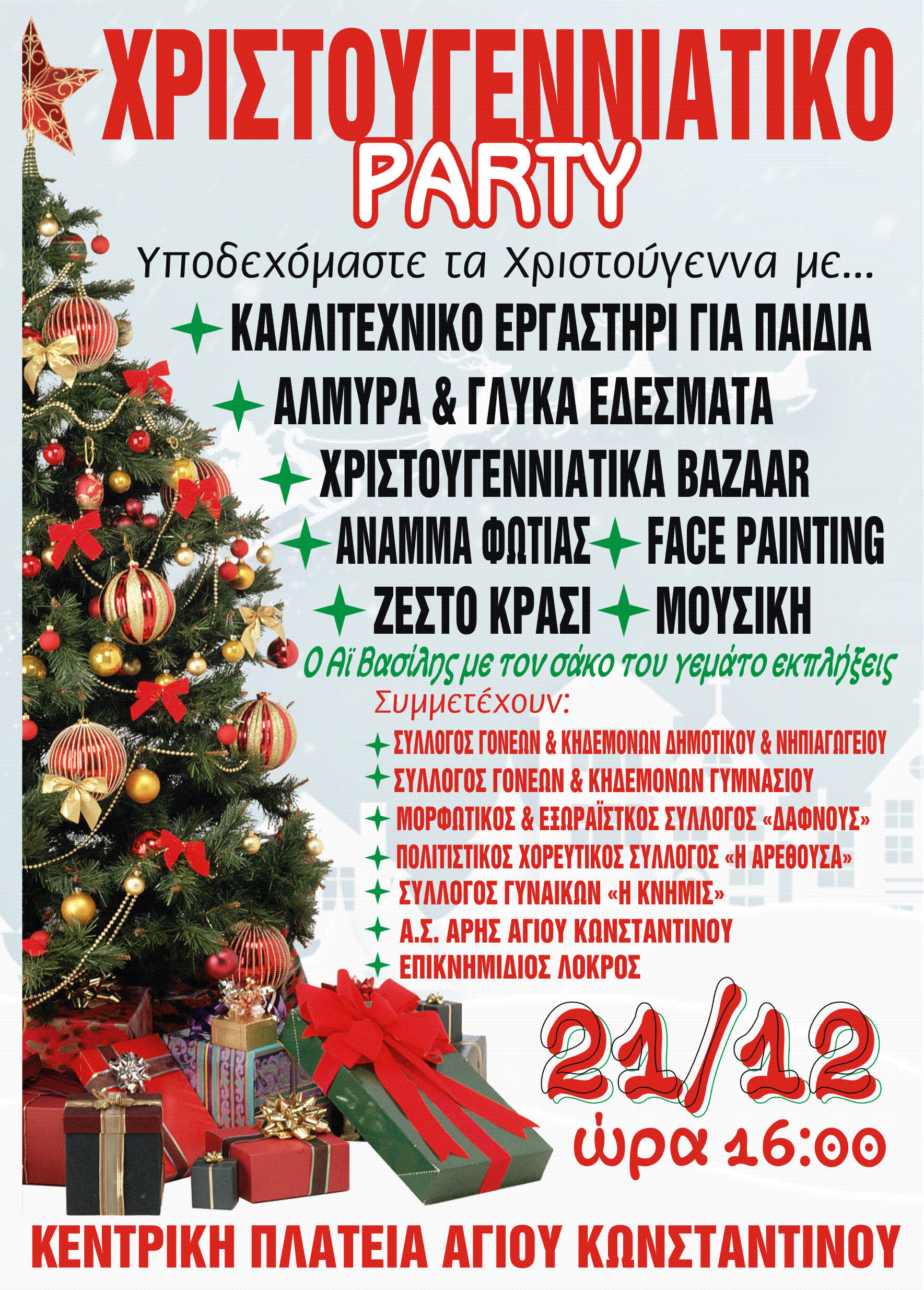 Το Σάββατο έχει χριστουγεννιάτικο πάρτυ στον Άγιο Κωνσταντίνο!