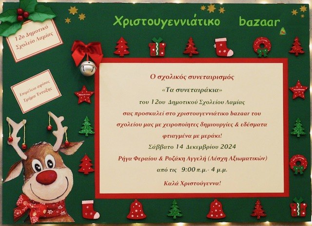 Σήμερα Σάββατο τα «Συνεταιράκια» του 12ου Δημοτικού Σχολείου Λαμίας έχουν bazaar στο κέντρο της Λαμίας