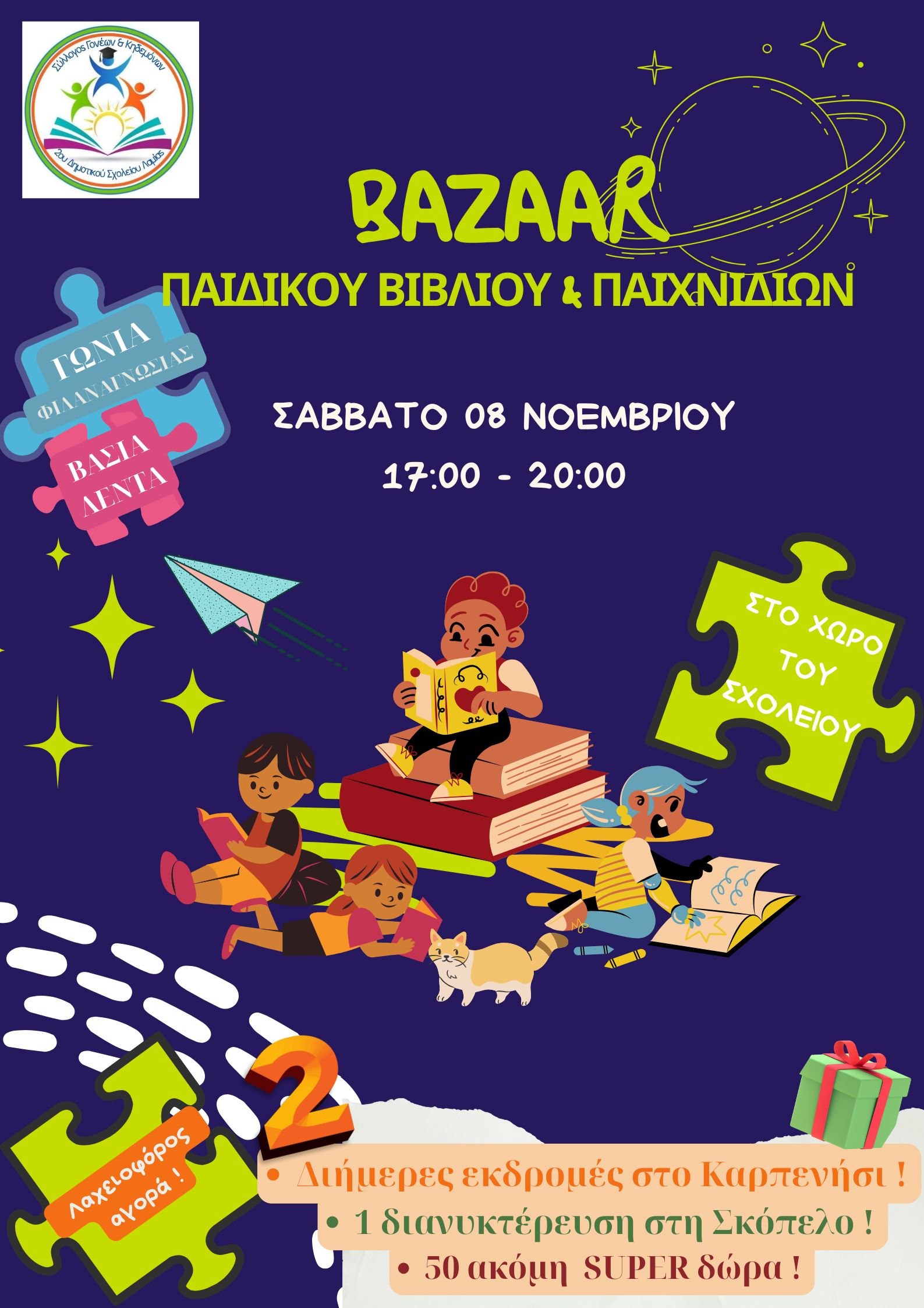 Ελάτε να υποστηρίξουμε μαζί τα παιδιά του σχολείου και να περάσετε μια υπέροχη μέρα γεμάτη βιβλία, παιχνίδια, δημιουργία και χαρά!
