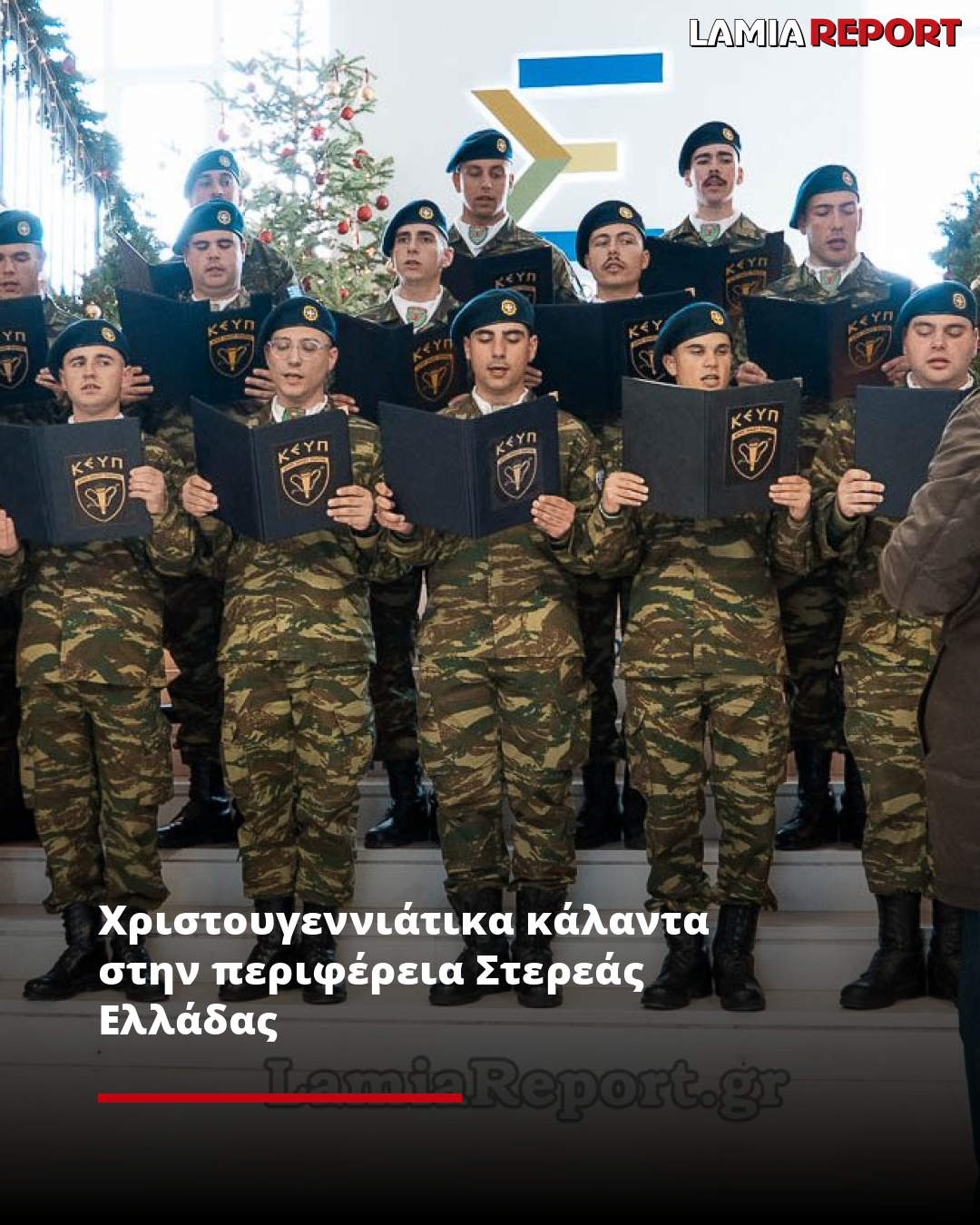 Τα χριστουγεννιάτικα κάλαντα τραγούδησαν στον περιφερειάρχη Στερεάς Ελλάδας Φάνη Σπανό και στους παρόντες αντιπεριφερειάρχες και υπαλλήλους 12 έφεδροι στρατιώτες και υποψήφιοι Έφεδροι Αξιωματικοί (ΥΕΑ) από το ΚΕΥΠ Λαμίας, το ΚΔΑΠ ΑμΕα «Πρόσβασις» και το Μουσικό Σχολείο Λαμίας.