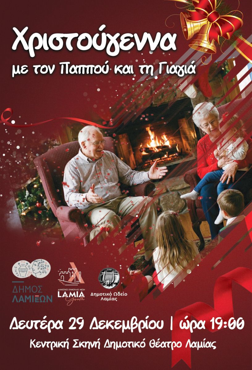 Το Συμβούλιο Νέων του Δήμου Λαμιέων σας προσκαλεί στην εκδήλωση «Χριστούγεννα με τον Παππού και τη Γιαγιά» τη Δευτέρα 29 Δεκεμβρίου στις 19:00 στην κεντρική σκηνή του Δημοτικού Θεάτρου Λαμίας.