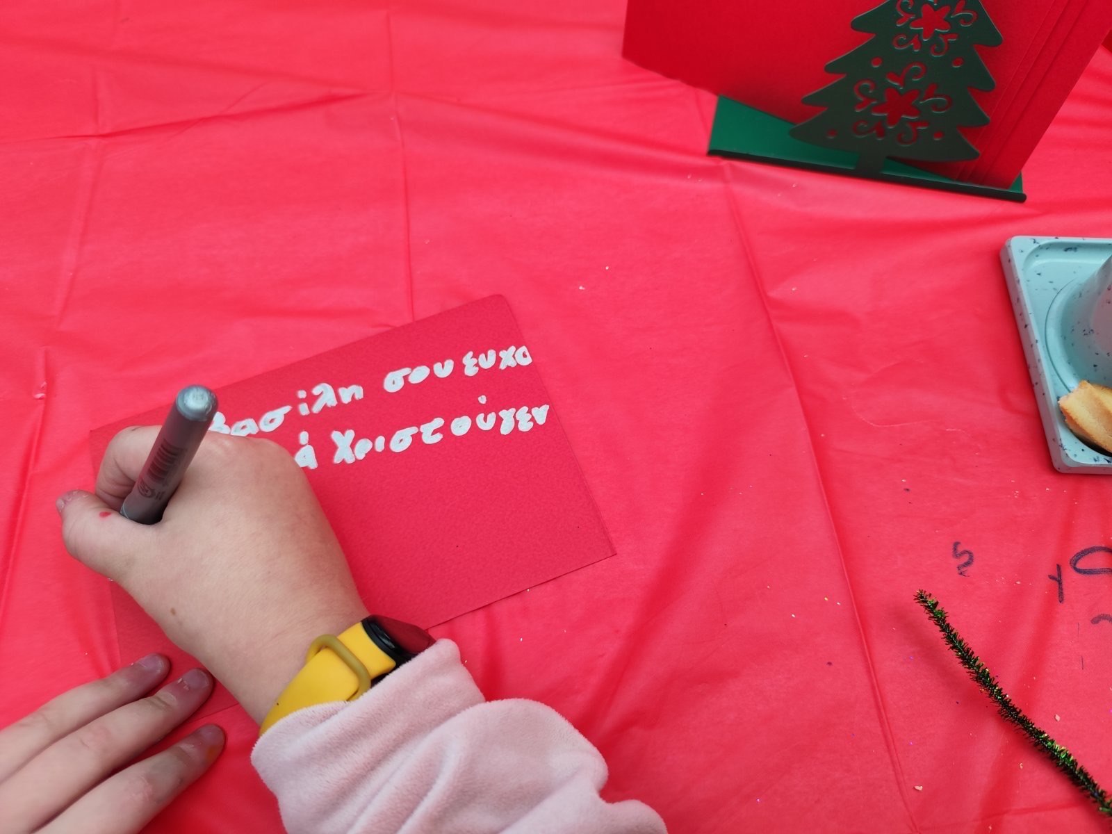 Στη δράση συμμετείχαν παιδιά 3 έως 12 ετών και κατασκεύασαν χριστουγεννιάτικες κάρτες με την καθοδήγηση των υπαλλήλων των ΚΔΑΠ κ. Ελένης Μπάρκα και κ. Ζωής Κυψίδου. Κάποιες από τις κάρτες δωρίστηκαν στη Win Cancer για τη δράση της «Επισκεπτήριο Αγάπης», με σκοπό να μοιραστούν στα Αντικαρκινικά Νοσοκομεία.