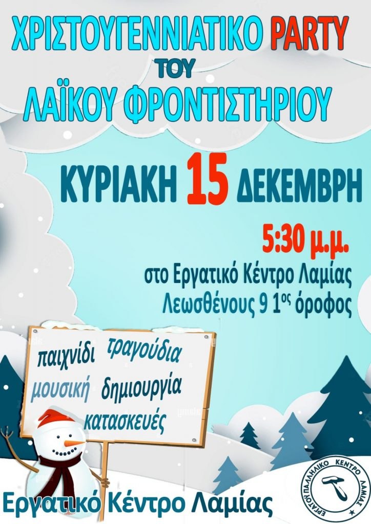 Χριστουγεννιάτικο πάρτυ την Κυριακή από το Εργατικό Κέντρο Λαμίας