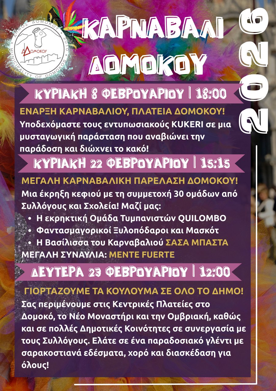 Ζήστε τη μαγεία του Καρναβαλιού στο Δήμο Δομοκού!