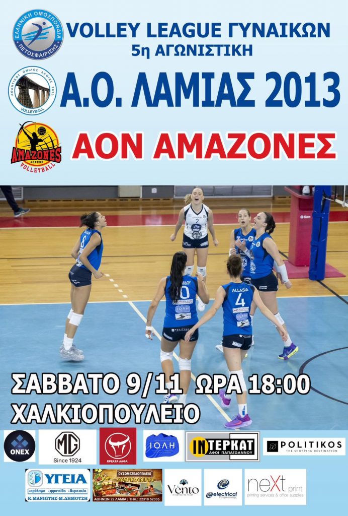 Ο Α.Ο. Λαμίας 2013 φιλοξενεί τις Αμαζόνες σήμερα Σάββατο 9 Νοεμβρίου στις 6:00' το απόγευμα στο Χαλκιοπούλειο.