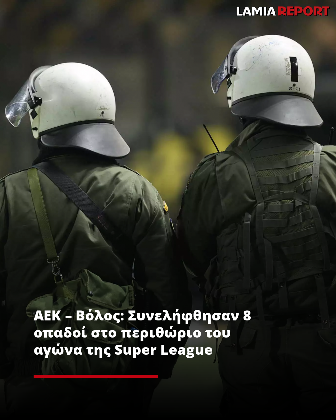 Σύμφωνα με την ενημέρωση από την ΕΛ.ΑΣ., οχτώ οπαδοί συνελήφθησαν πριν τη σέντρα του αγώνα της ΑΕΚ με το Βόλο, έξω από την OPAP Arena, για παραβάσεις της αθλητικής νομοθεσίας.