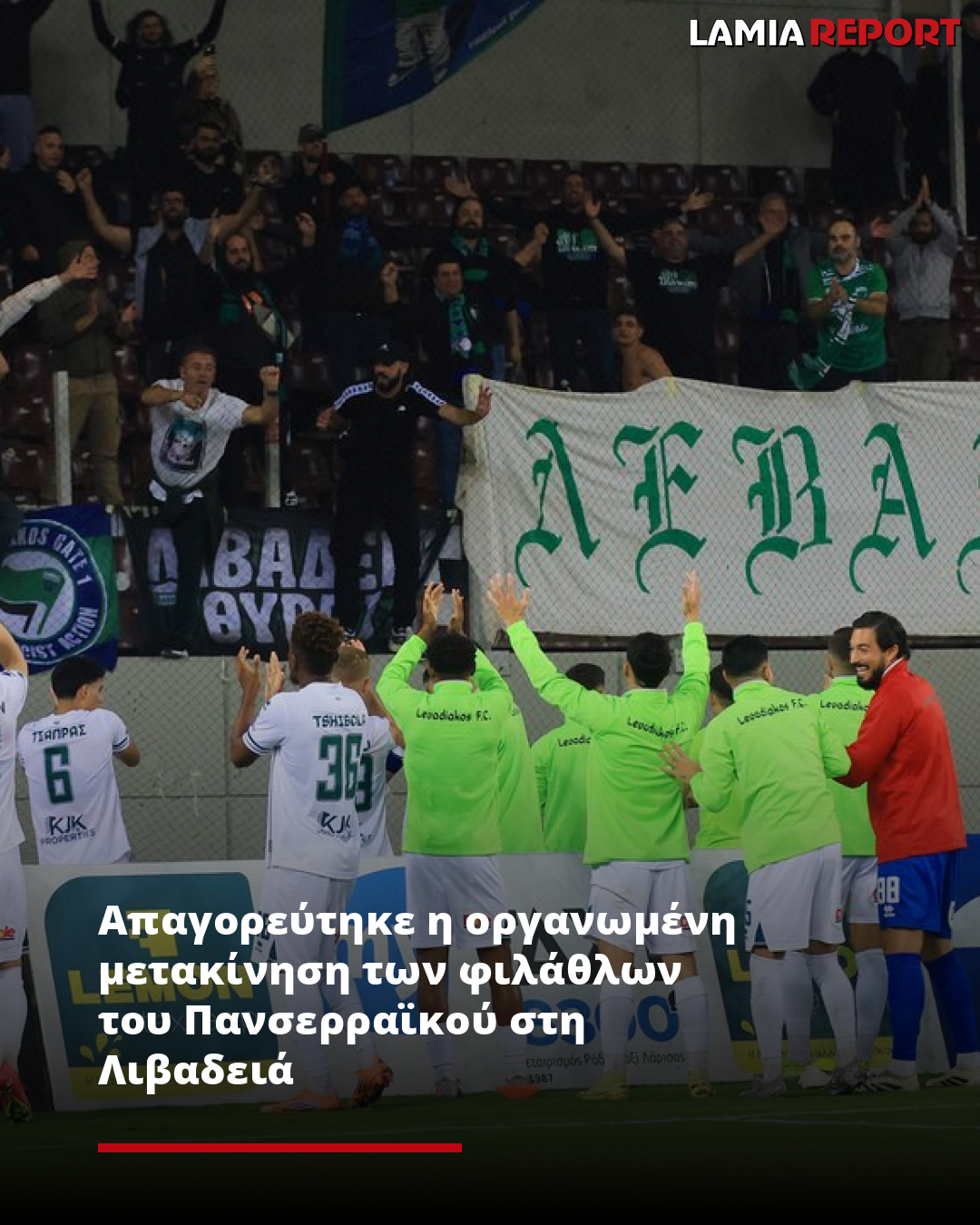 Από τη Γενική Περιφερειακή Αστυνομική Διεύθυνση Στερεάς Ελλάδας ανακοινώνεται ότι, σύμφωνα με Απόφαση που εκδόθηκε από το Υπουργείο Παιδείας, Θρησκευμάτων και Αθλητισμού, απαγορεύεται η οργανωμένη μετακίνηση των φιλάθλων του Πανσερραϊκού για το αγώνα της ομάδας τους στο πλαίσιο της 10ης αγωνιστικής της SUPER LEAGUE 1, με αντίπαλο τον Λεβαδειακό στη Λιβαδειά.