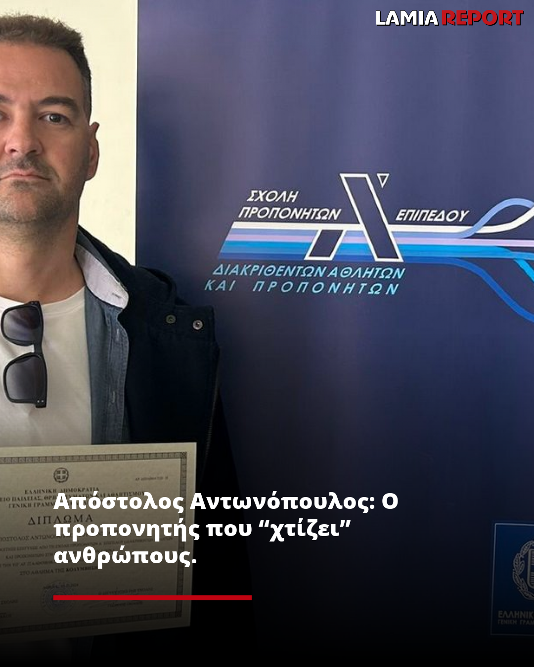 Όχι σχετικά με αθλητικές επιδόσεις και για τα δικά της παιδιά, αλλά για τις ανθρώπινες επιδόσεις του προπονητή της Αναγέννησης Λαμίας, του Λαμιώτη Ολυμπιονίκη Απόστολου Αντωνόπουλου.