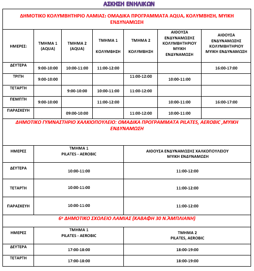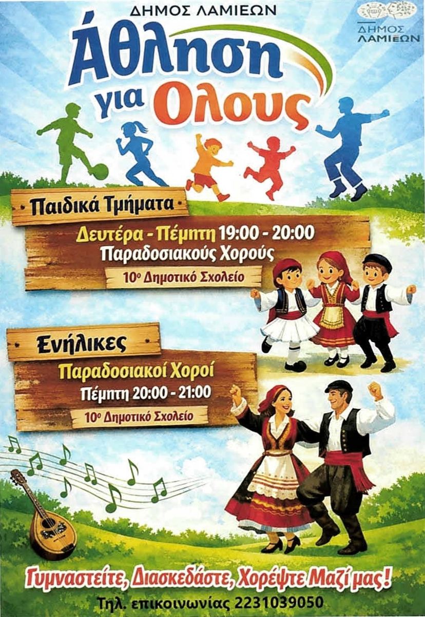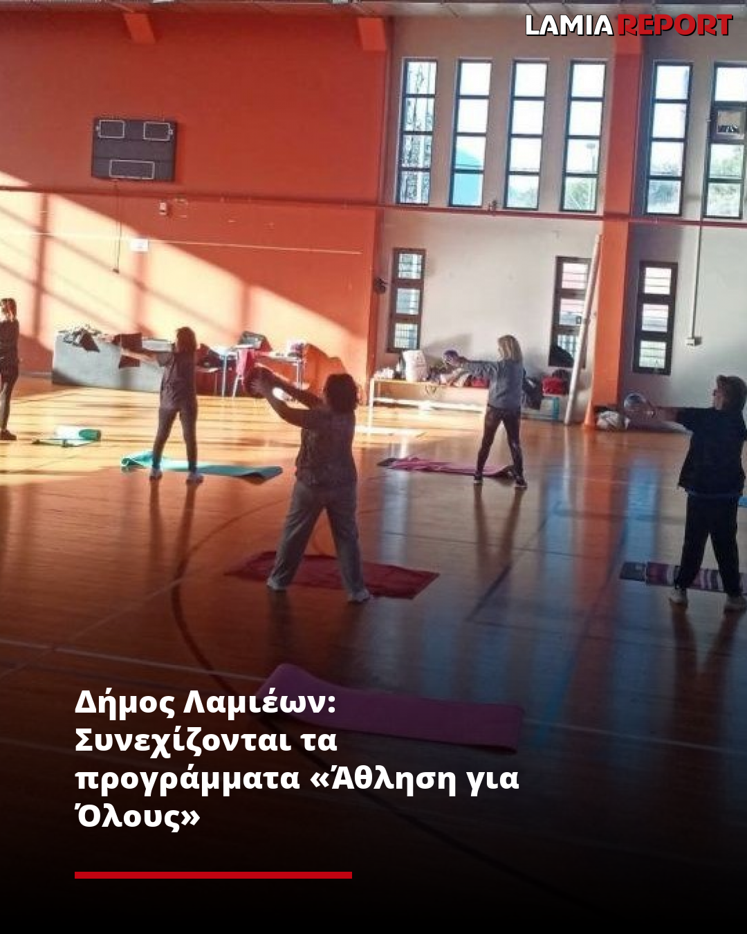 Ο Δήμος Λαμιέων ενημερώνει ότι τα προγράμματα «Άθληση για Όλους» συνεχίζονται δυναμικά και προσκαλεί όλους, μικρούς και μεγάλους, να γίνουν μέρος μιας ανοιχτής αθλητικής παρέας, ανεξαρτήτως ηλικίας ή φυσικής κατάστασης.