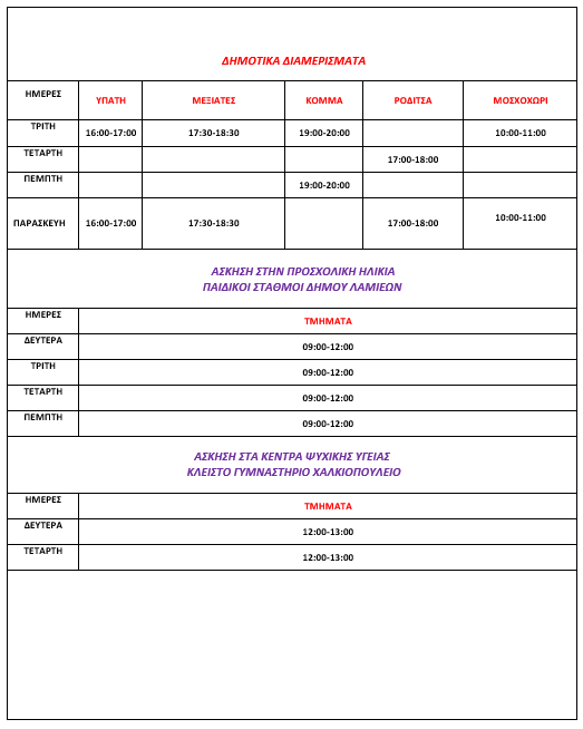 ΧΩΡΟΙ ΥΛΟΠΟΙΗΣΗΣ «ΑΘΛΗΣΗ ΓΙΑ ΟΛΟΥΣ» & ΠΡΟΓΡΑΜΜΑ ΤΜΗΜΑΤΩΝ