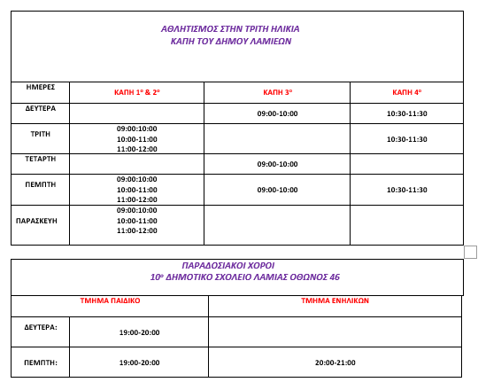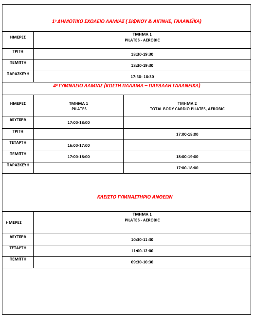 Ακολουθεί το αναλυτικό πρόγραμμα των τμημάτων, στο οποίο έχουν προστεθεί και νέα τμήματα, με στόχο την κάλυψη του αυξημένου ενδιαφέροντος των συμμετεχόντων.