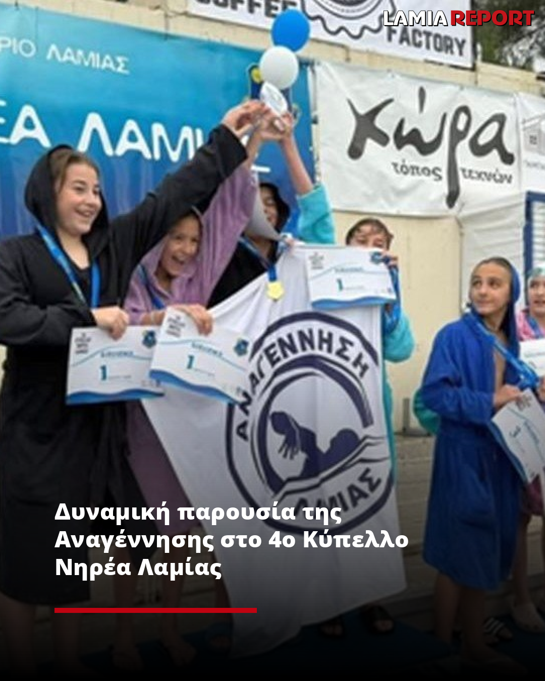 Συμμετοχή του προαγωνιστικού τμήματος της Αναγέννησης Λαμίας στο 4ο Κύπελλο Λαμίας, που πραγματοποιήθηκε στο Δημοτικό Κολυμβητήριο της πόλης μας, στις 26 Απριλίου.