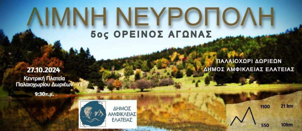 Για «τον αγαπημένο αγώνα μικρών και μεγάλων» 5ο Ορεινό Αγώνα Τρεξίματος "Λίμνη Νευρόπολη 2024", ο οποίος θα διεξαχθεί την Κυριακή 27 Οκτωβρίου 2024 στο Παλαιοχώρι Δωριέων του Δήμου Αμφίκλειας - Ελάτειας γράφει η Δήμαρχος Αθανασία Στιβακτή.