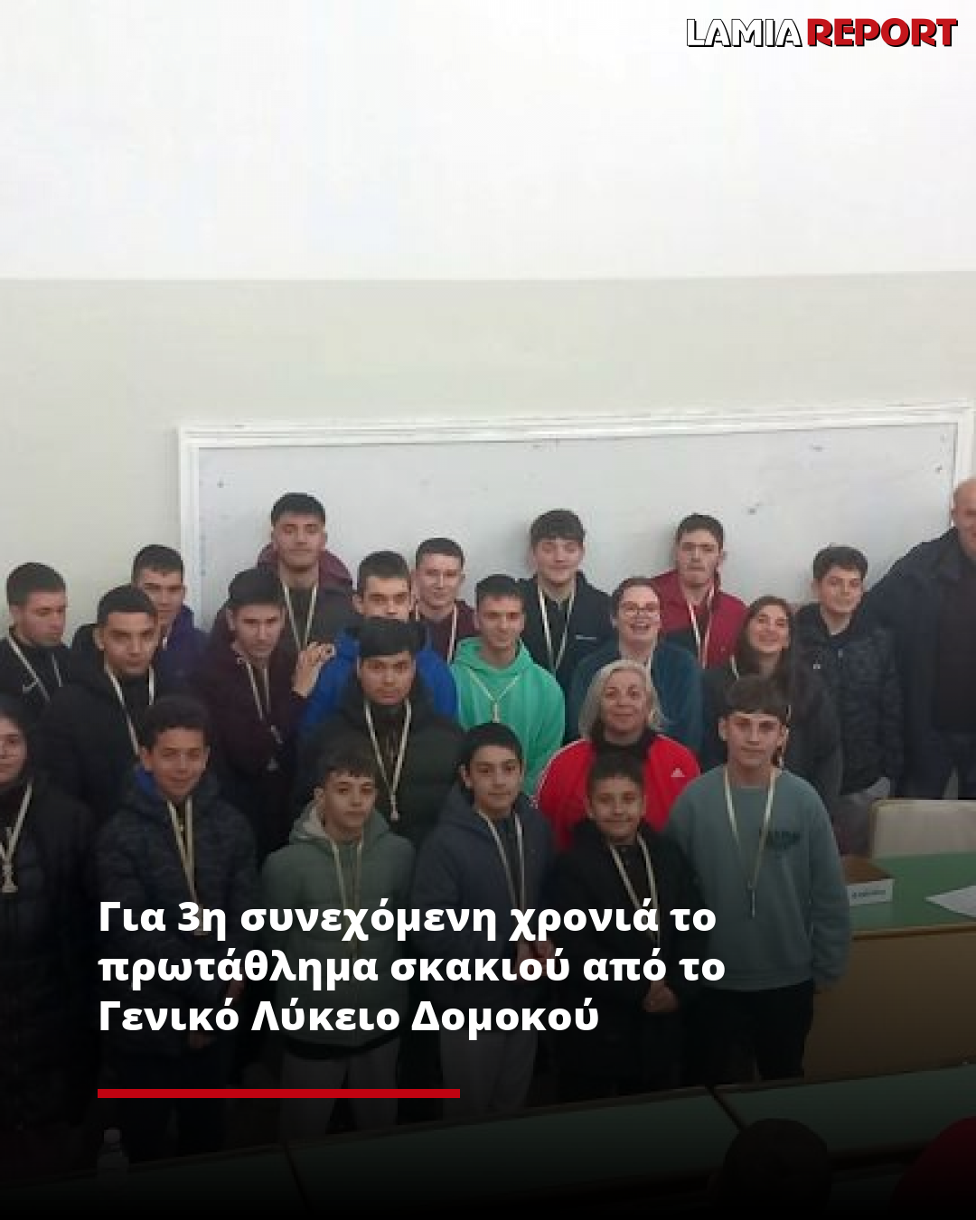 Για 3η συνεχόμενη χρονιά το πρωτάθλημα σκακιού από το Γενικό Λύκειο Δομοκού