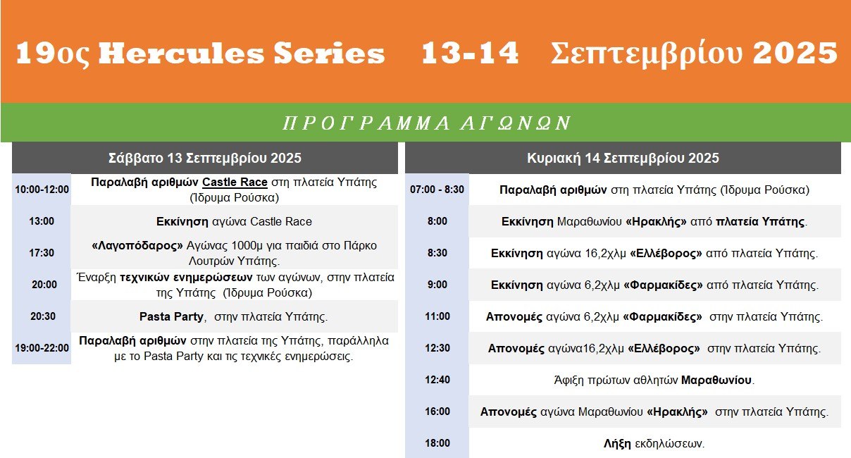 13 και 14 Σεπτεμβρίου 2025 θα πραγματοποιηθεί ο 19ος Hercules Series.