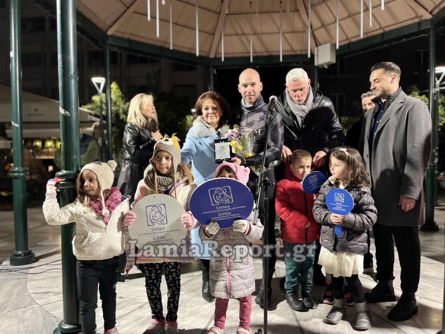 Μία συγκινητική δράση πραγματοποιήθηκε με πρωτοβουλία του Δήμου Λαμιέων, χθες , το βράδυ του Σαββάτου 8 Φεβρουαρίου, στην Πλατεία Ελευθερίας και παρά το τσουχτερό κρύο, το κλίμα και η διάθεση του κόσμου ζέσταναν την ατμόσφαιρα.