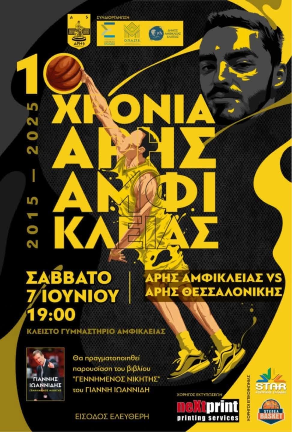 «Η αγαπημένη μας ομάδα μπάσκετ συμπληρώνει 10 χρόνια παρουσίας στην ελληνική ερασιτεχνική καλαθοσφαίριση και το γιορτάζει, το Σάββατο 7 Ιουνίου 2025 και ώρα 19:00 στο κλειστό γυμναστήριο Αμφίκλειας!