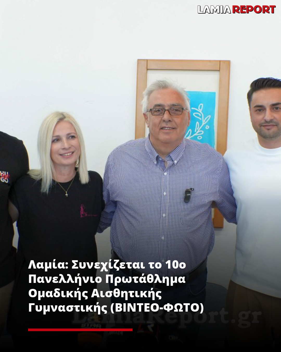 «Ο Δήμος Λαμιέων έχει τη χαρά και την τιμή να φιλοξενεί στο Χαλκιοπούλειο Κλειστό Γυμναστήριο στην πόλη μας, το 10ο Πανελλήνιο Πρωτάθλημα Ομαδικής Αισθητικής Γυμναστικής, που θα διεξαχθεί από τις 9 έως τις 11 Μαΐου 2025.