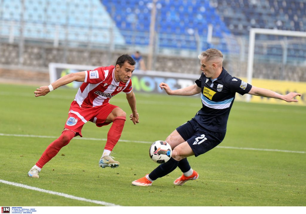 Στο 22’ μια ωραία έμπνευση του Αθανασακόπουλου ο οποίος πήγε από τη σέντρα να κρεμάσει τον εκτός θέσεως Γκουγκεσασβίλι (άουτ), σε ένα από τα αρκετά κλεψίματα της Λαμίας στη μεσαία γραμμή.