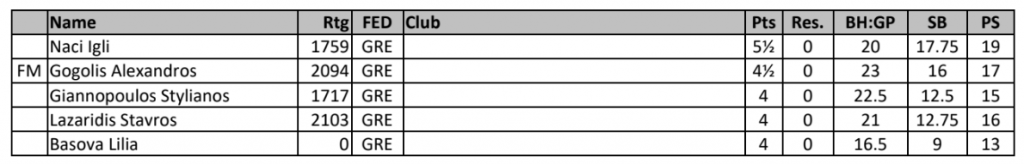 Στην Τρίτη θέση ισοβάθμησαν με 4 βαθμούς οι Γιαννόπουλος Στυλιανός, Λαζαρίδης Σταύρος και Basova Lilia.