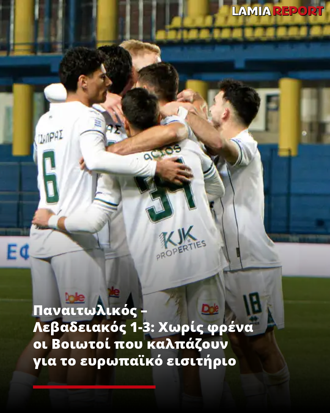 Ο Λεβαδειακός, όπως σημειώνει το newsit.gr, έκανε ακόμα μία μεγάλη νίκη στην Super League, αυτή τη φορά στην έδρα του Παναιτωλικού με 3-1 για την 17η αγωνιστική.