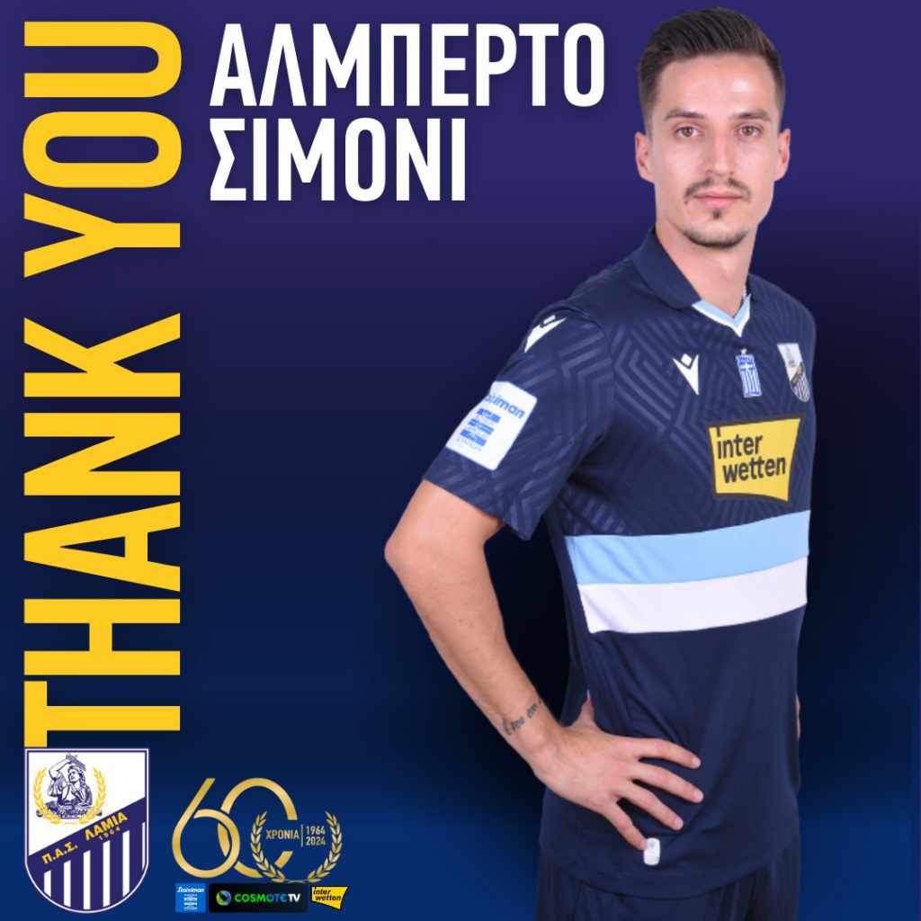 Η ΠΑΕ ΠΑΣ ΛΑΜΙΑ 1964 ανακοινώνει την κοινή συναινέσει λύση της συνεργασίας της με τον ποδοσφαιριστή Αλμπέρτο Σιμόνι. Ο 28χρονος επιθετικός ήρθε στην ομάδα μας τον Ιούλιο του 2024, καταγράφοντας 5 συμμετοχές με τη φανέλα του συλλόγου σε πρωτάθλημα και Κύπελλο.