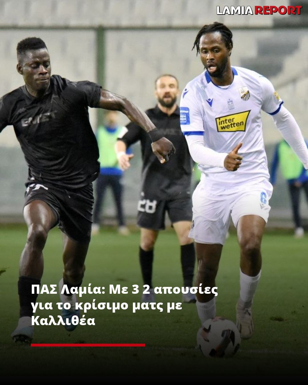 Η Λαμία που προέρχεται από τη σημαντική ισοπαλία στις Σέρρες, όπου αγωνίστηκε και με τρεις βασικές ελλείψεις στην επίθεση, Φουρτάδο, Κλωναρίδης και Ιμπάνιες. Στο ματς με την Καλλιθέα ο τεχνικός της Λαμίας, έχει ακόμη δύο απουσίες «βασικών», αυτή τη φορά από τη μεσαία γραμμή. Συγκεκριμένα, Σουρδής και Δοϊρανλής απουσιάζουν από την αποστολή που ανακοινώθηκε το βράδυ της Παρασκευής.